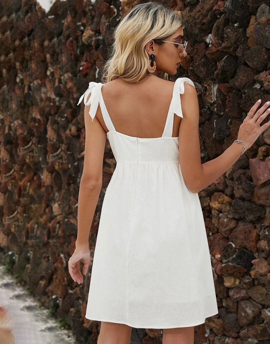 White A-Line Spaghetti Straps Tie Back Short Graduation Dress