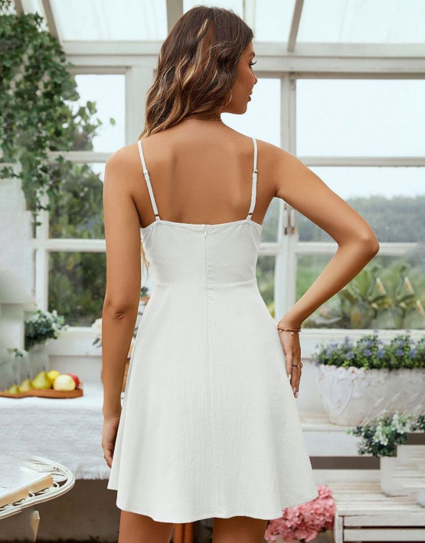 White Spaghetti Straps Short Mini Graduation Dress With Slit