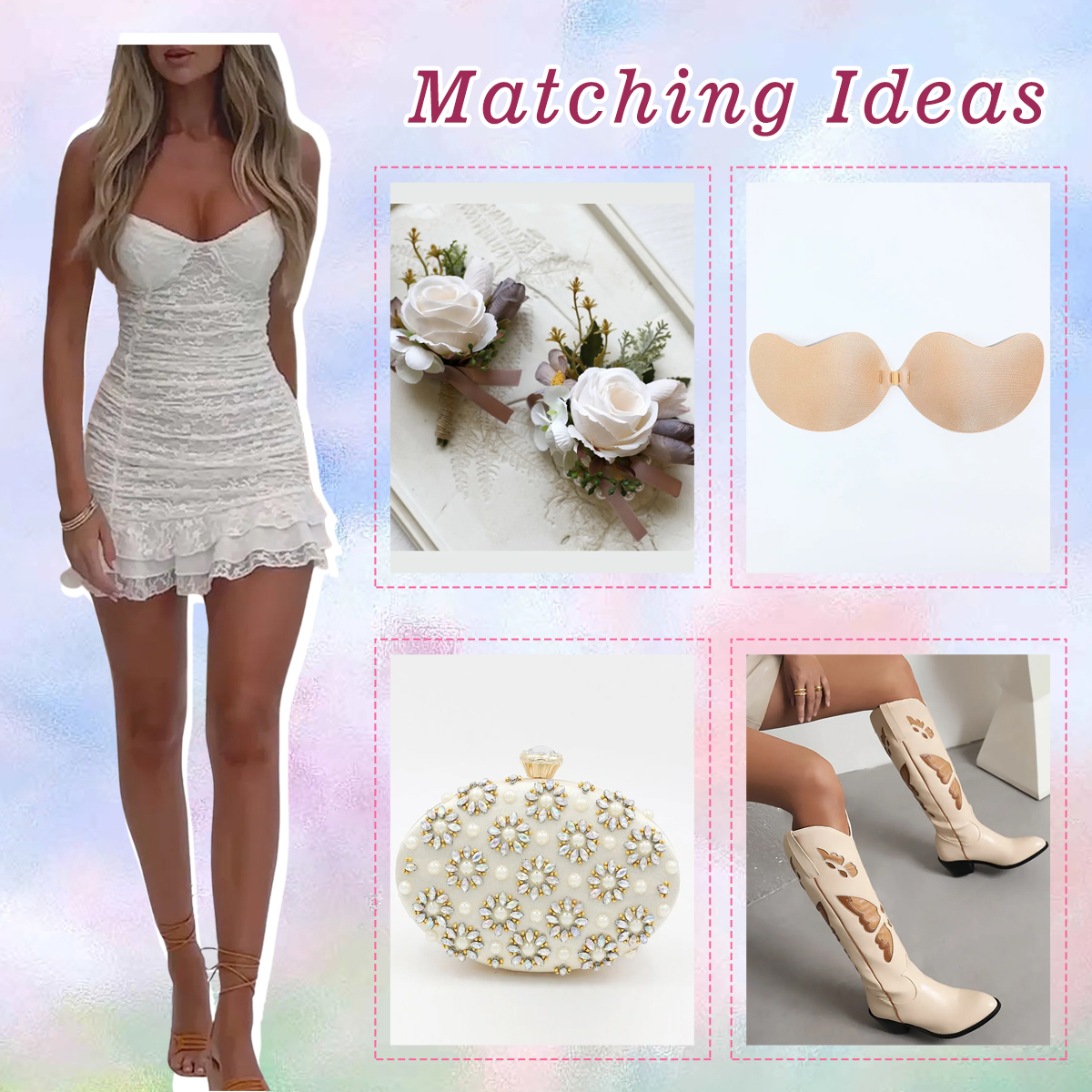 Celebrate your milestone in the Berlinnova Woman White Bodycon Graduation Dress. This sleek Bodycon silhouette is designed to hug and flatter your figure, offering a sophisticated yet playful look. The short design is beautifully crafted from delicate Lace fabric, featuring an elegant Little Lace pattern throughout. The dress is supported by dainty Spaghetti Straps, ensuring a secure and comfortable fit. Enhance your beauty and make a lasting impression with this must-have dress! Whether you are dressing it for a wedding party, bridal shower party, rehearsal dinner party, engagement party, bachelorette party or any other occasions, this dress will be your lovely partner. |