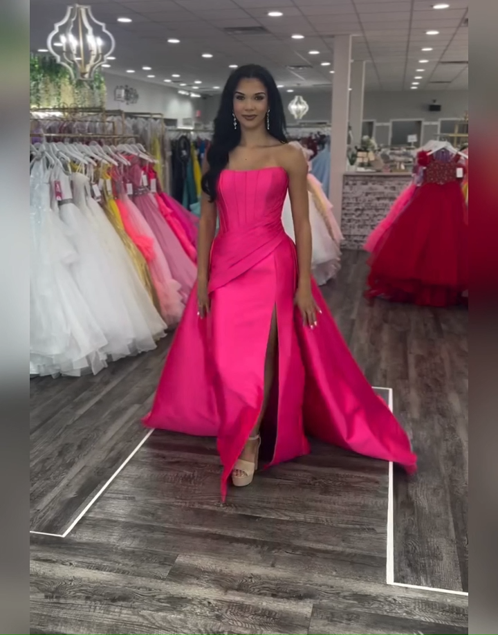 Fuchsia Mermaid Strapless Corset Satin Long Prom Dress with Cape