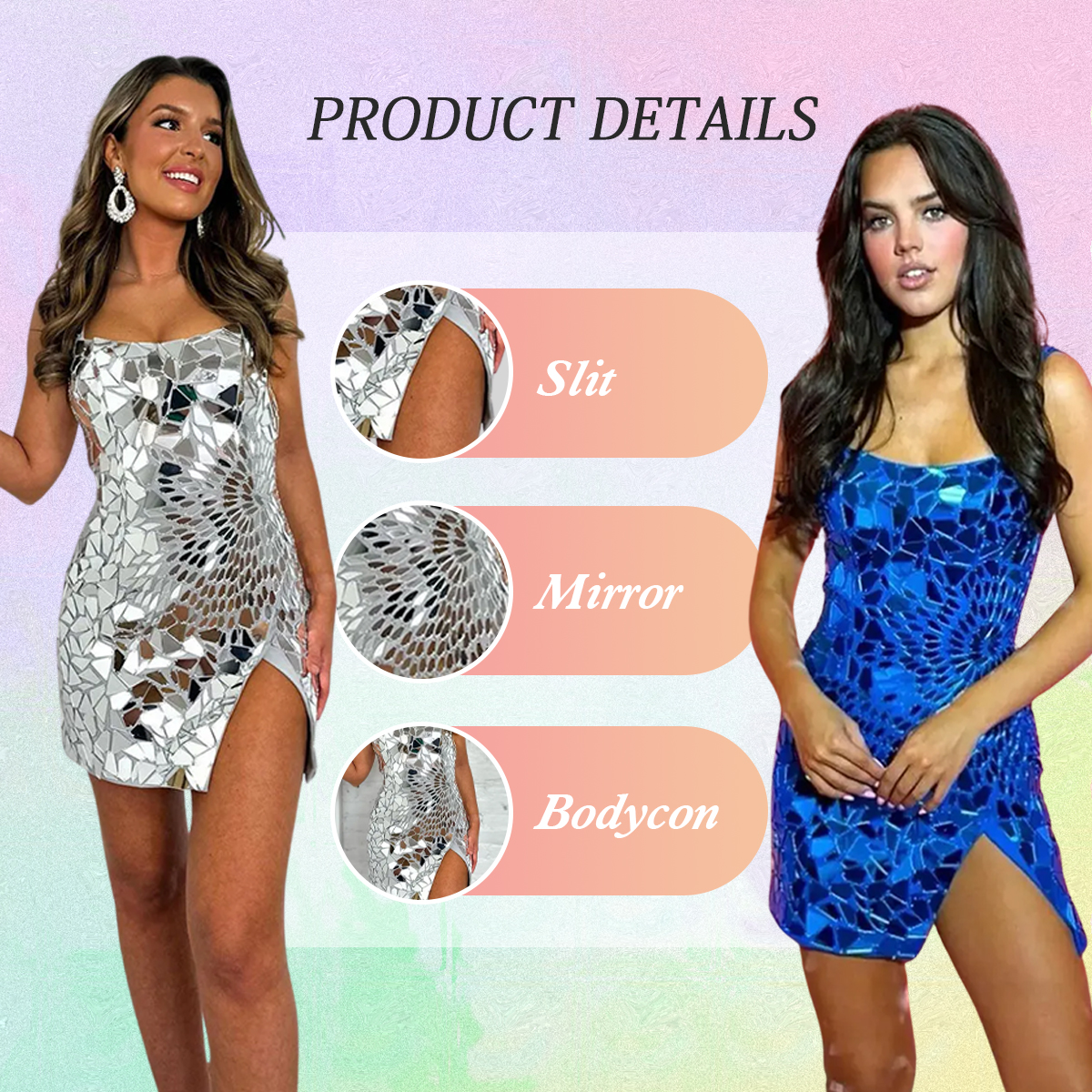Exuding an air of modern sophistication, this dress is a true marvel. The dressis a striking piece crafted in a shimmering style. Its sleeveless design reveals and daring side-split adds a touch of allure, allowing a glimpse. What truly sets this dress apart is the intricate mirror - like shards that adorn its surface. These reflective elements catch the light from every angle, creating a dazzling play of reflections that make the dress seem to come alive. The dress hugs body in all the right places, accentuating curves while maintaining a sense of grace. Whether you're wearing it for homecoming, a sweet 16, a birthday celebration, or even a fun prom night, this playful party dress will be your go-to choice for making unforgettable memories. It's also perfect for photoshoots, beach, vacation, holiday, night going out, date, party, street, work, club, travel, casual daily wear, and any special moment where you want to shine. |