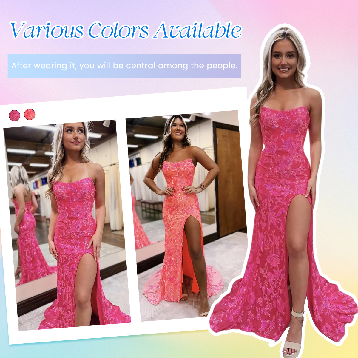 | OCCASION: | Display timeless grace in this meticulously designed Colette By Berlinnova Gorgeous Strapless Mermaid Lace Up Long Prom Dress. Crafted from a mermaid silhouette embellished with a floral sequin pattern, this gown showcases a strapless bodice. Adorned with a low laced-up back, the mermaid skirt reveals a thigh-high slit, accentuating the allure of this glittering prom gown. It transforms yourself into a total stunner with this Berlinnova Gorgeous Strapless Mermaid Lace Up Long Prom Dress. Available in Coral, Fuchsia, and other sizes. Ideal for gala events and special occasions. Elevate your style with this elegant gown. Perfect for occasions like proms, parties, evenings, gala, pageants, or any formal events. |