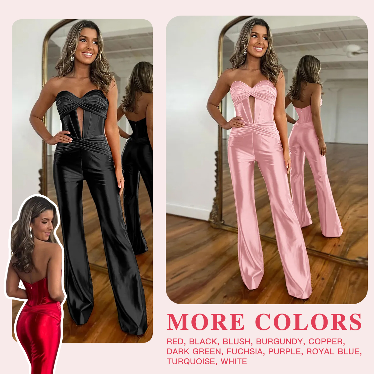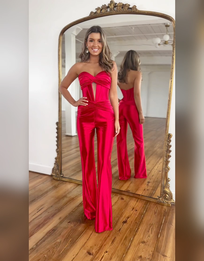 Break the mold and make a bold statement in the Berlinnova Women Red Corset Tight Long Satin Prom Jumpsuit. This chic Jumpsuit (or Prom Romper) offers a sleek, Tight silhouette that is both modern and figure-flattering. The bodice features a structured Corset design and a romantic Sweetheart neckline, elevated by a sophisticated Cut Out detail. It suits formal galas, evening weddings as a guest outfit, or even a high-end cocktail party, ensuring you exude confidence and style wherever you wear it. |