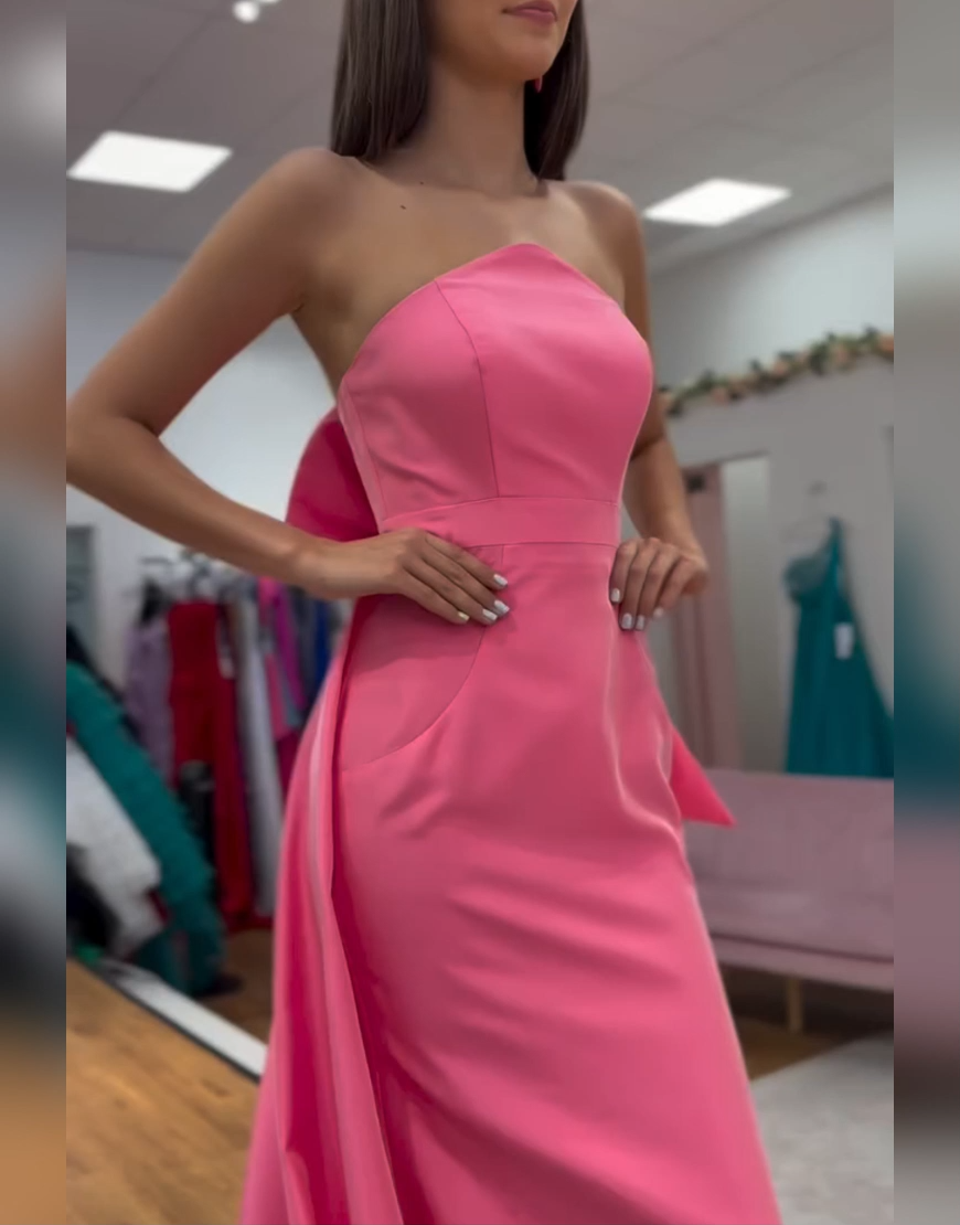 Pink Mermaid Long Strapless Prom Dress with Cape