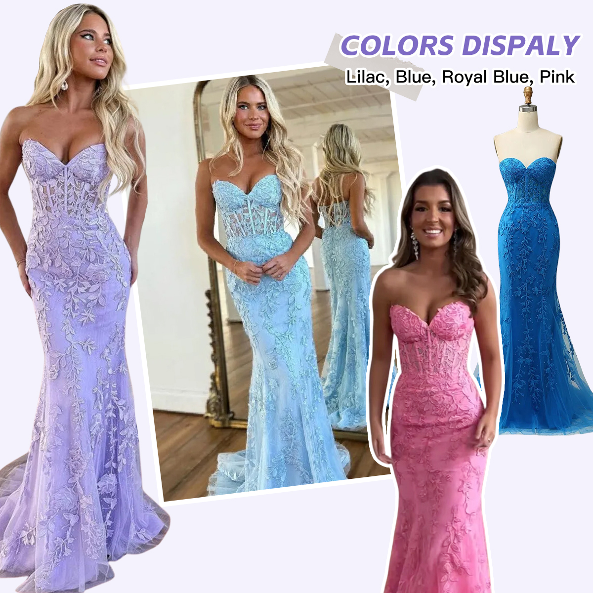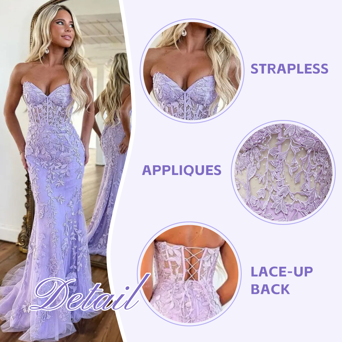 | OCCASION: | Make a bold and romantic statement in this Lilac Mermaid Lace Prom Dress. This striking gown features a structured corset-style bodice with a timeless sweetheart neckline, all covered in intricate, tonal lace appliqués. The figure-hugging silhouette flares into a classic mermaid skirt with a sheer tulle overlay, while the lace-up back ensures a perfectly tailored fit. This passionate look is ideal for prom, formal galas, pageants, or winter formals, offering a blend of traditional texture and modern red-carpet allure. |