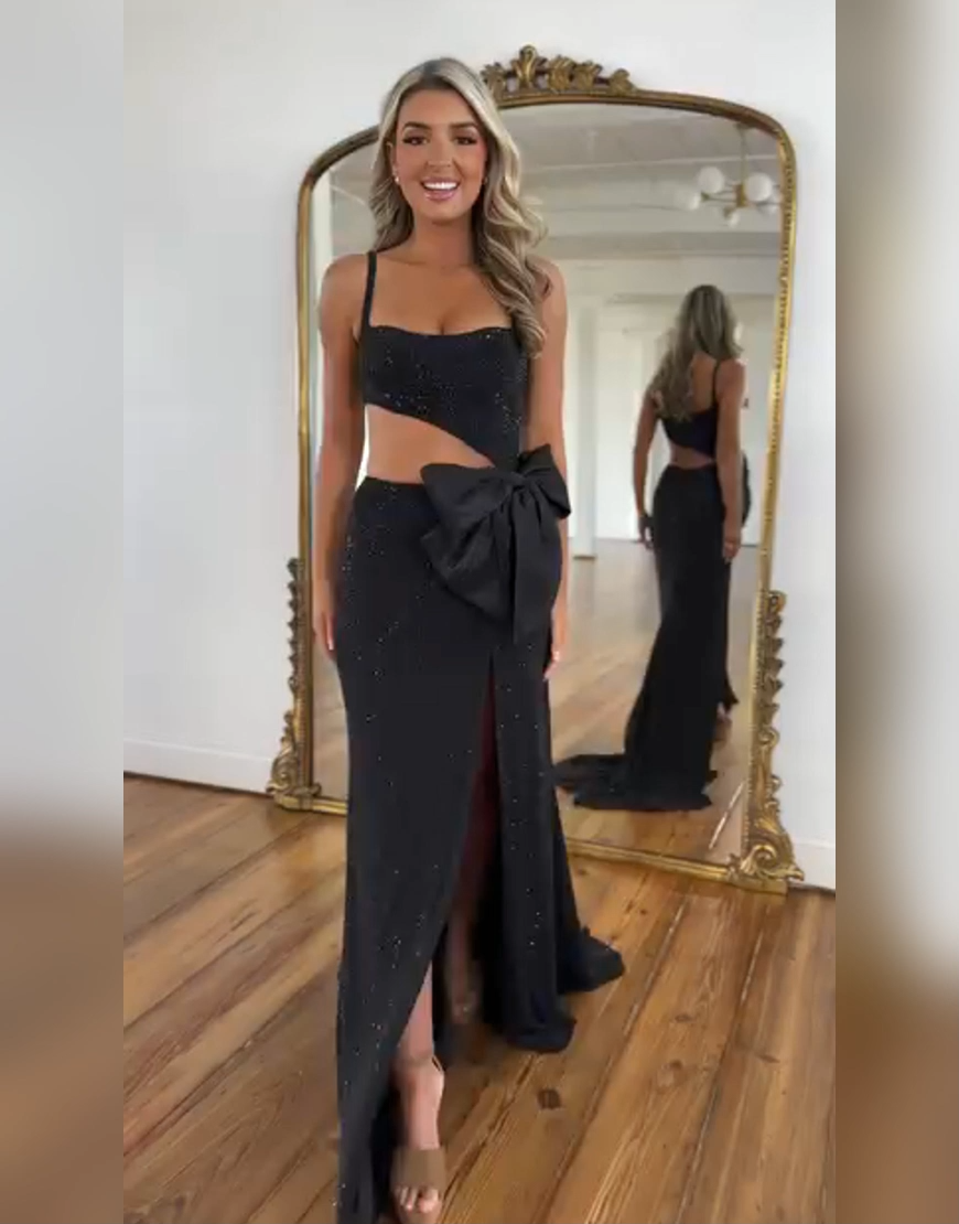 Make a sophisticated statement in the Berlinnova Women Sparkly Black Long Prom Dress. This captivating Mermaid silhouette is meticulously tailored to sculpt your figure, featuring an alluring high Slit for striking movement. The bodice is supported by delicate Spaghetti Straps and beautifully adorned with intricate Beading. A charming Bow detail adds a sweet, unique accent to the design. Available in various US sizes, including custom sizing. Elevate your prom night with this resplendent dress. Perfect for occasions like proms, parties, military balls, pageant matches, and galas. |