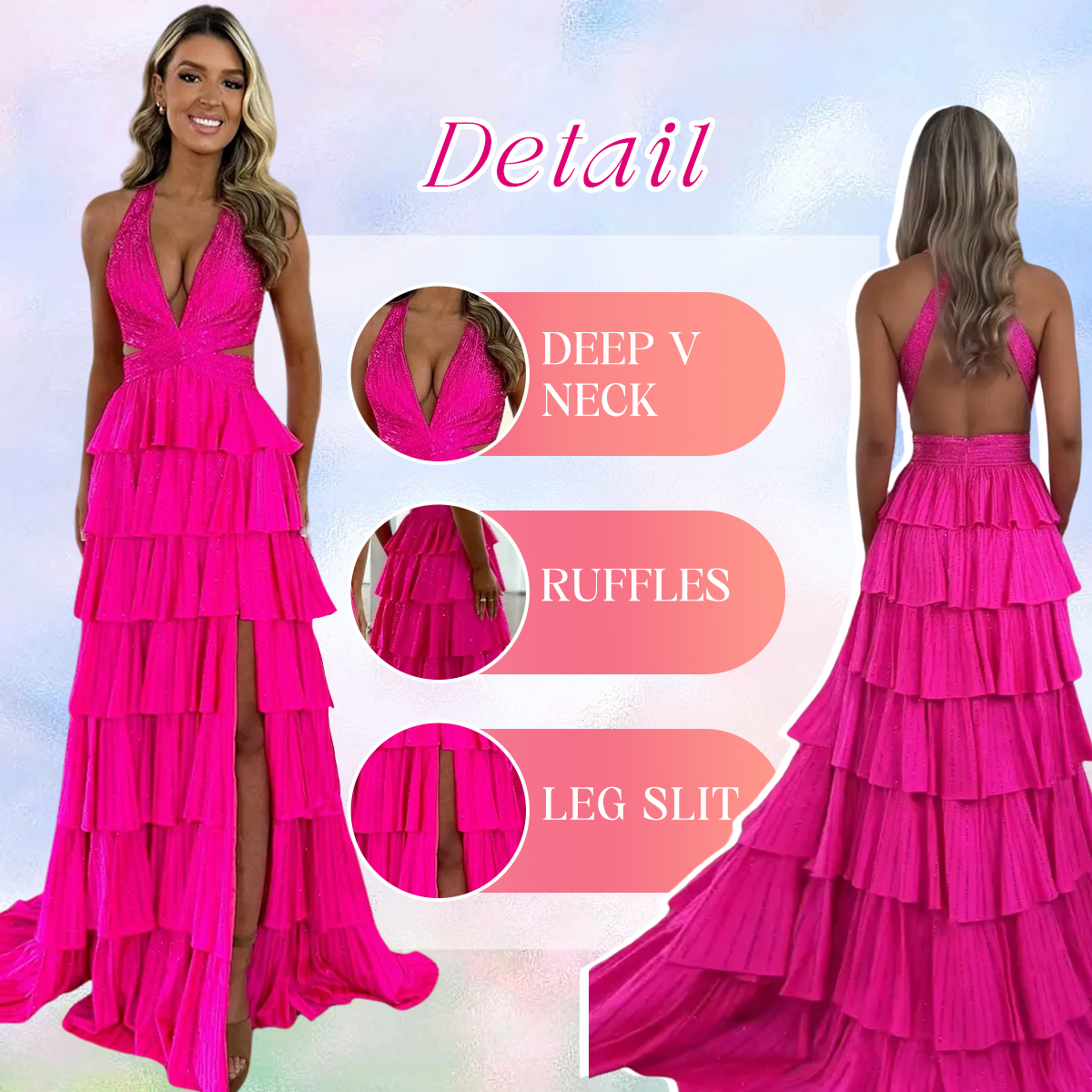 | OCCASION: | Capture the spotlight in our Sparkly Grey A-Line Halter Beaded Ruffles Long Prom Dress with a chic slit. Our Sparkly Fuchsia A-Line Halter Beaded Ruffles Long Prom Dress with Slit is the perfect dress for you! This stunning dress features beading design, delicate material detailing, and beautiful ruffles that will have all heads turning in your direction. As soon as you slip into this gorgeous gown, you'll feel like royalty. The layers of exquisite trim make it feel like a dream come true. Our A-Line Prom Dress is ideal for formal dresses, offering a regal and refined look. Available in various colors and sizes, this Berlinnova Women's evening dress is perfect for making a statement at any formal event. Shine bright and stand out in style. Perfect for occasions like proms, parties, evenings, gala, pageants, or any formal events. |