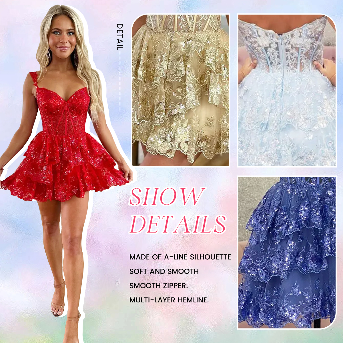 | OCCASION: | Whether you're wearing it for homecoming, a sweet 16, a birthday celebration, or even a fun prom night, this playful party dress will be your go-to choice for making unforgettable memories. It's also perfect for photoshoots, beach, vacation, holiday, night going out, date, party, street, work, club, travel, casual daily wear, and any special moment where you want to shine. |