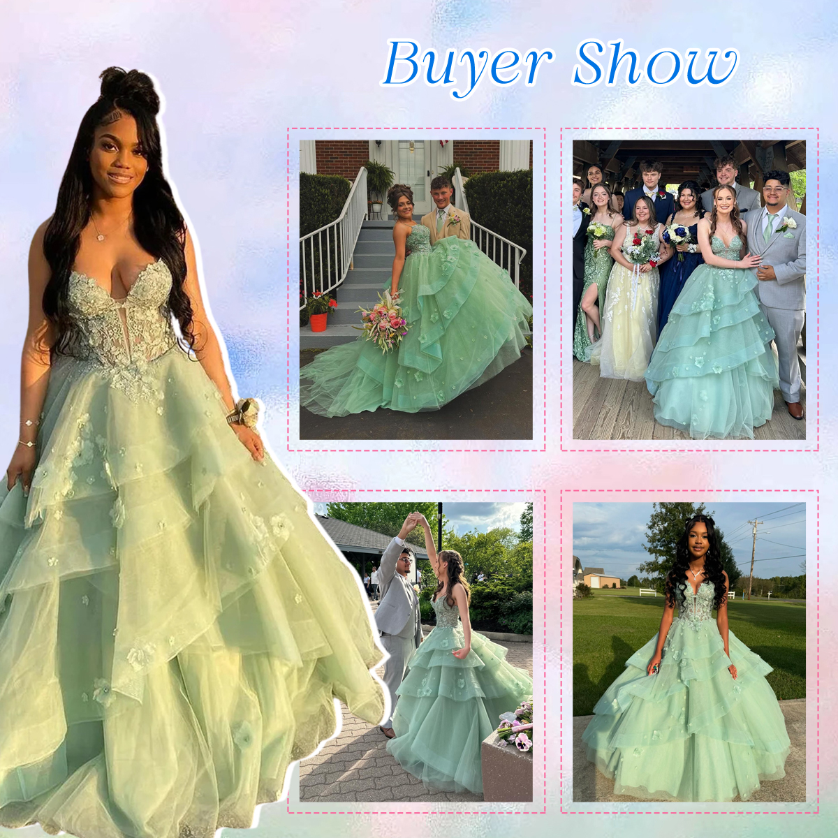 Embrace a fairy-tale aesthetic with the Berlinnova Women Sparkly Sage Long Prom Dress. This magnificent A-Line Ball Gown silhouette is crafted from layers of ethereal Tulle, designed to create a voluminous and breathtaking look for your most special occasions. The structured Corset bodice features delicate Spaghetti Straps and is exquisitely adorned with intricate Appliqued details. The skirt is a masterpiece of design, featuring Tiered and Ruffled layers that add movement and drama. Infused with a mesmerizing Sparkly finish and presented in a trendy, serene Sage green, perfect for proms, parties, galas, balls, pageants, or any formal events. |