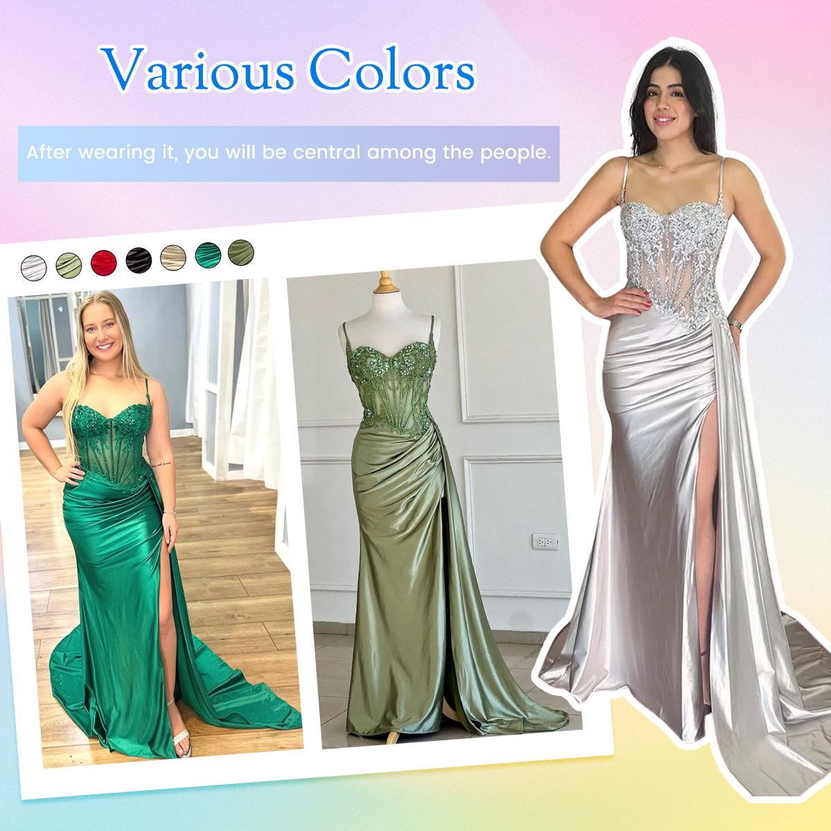 | OCCASION: | Whether you are dressing it for a wedding party, prom, evening party, or any other occasion, this party dress will be your lovely partner. |