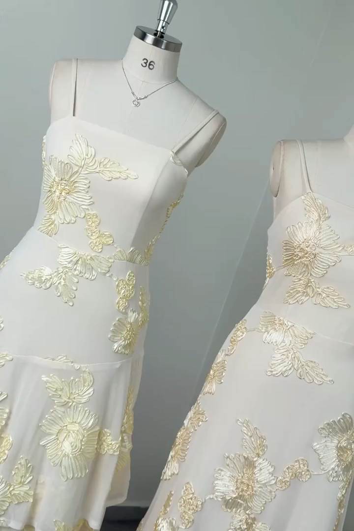 Occasion: This Yellow Floral A-Line Long Prom Dress is a sunny and romantic choice that captures the essence of spring elegance. The gown features a sleek square neckline with delicate spaghetti straps, leading to a beautiful lace-up back that ensures a perfect, adjustable fit. Its airy A-line silhouette is crafted from soft tulle, embellished with intricate 3D floral appliqués that bloom across the entire dress for a textured, whimsical look. This enchanting gown is perfect for proms, garden parties, outdoor weddings, or spring formals where you want to radiate a fresh and feminine glow.