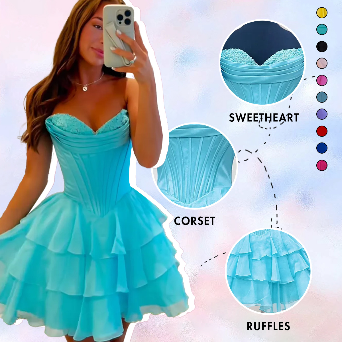 Occasion: Whether you're wearing it for homecoming, a sweet 16, a birthday celebration, or even a fun prom night, this playful party dress will be your go-to choice for making unforgettable memories. It's also perfect for photoshoots, beach, vacation, holiday, night going out, date, party, street, work, club, travel, casual daily wear, and any special moment where you want to shine.
